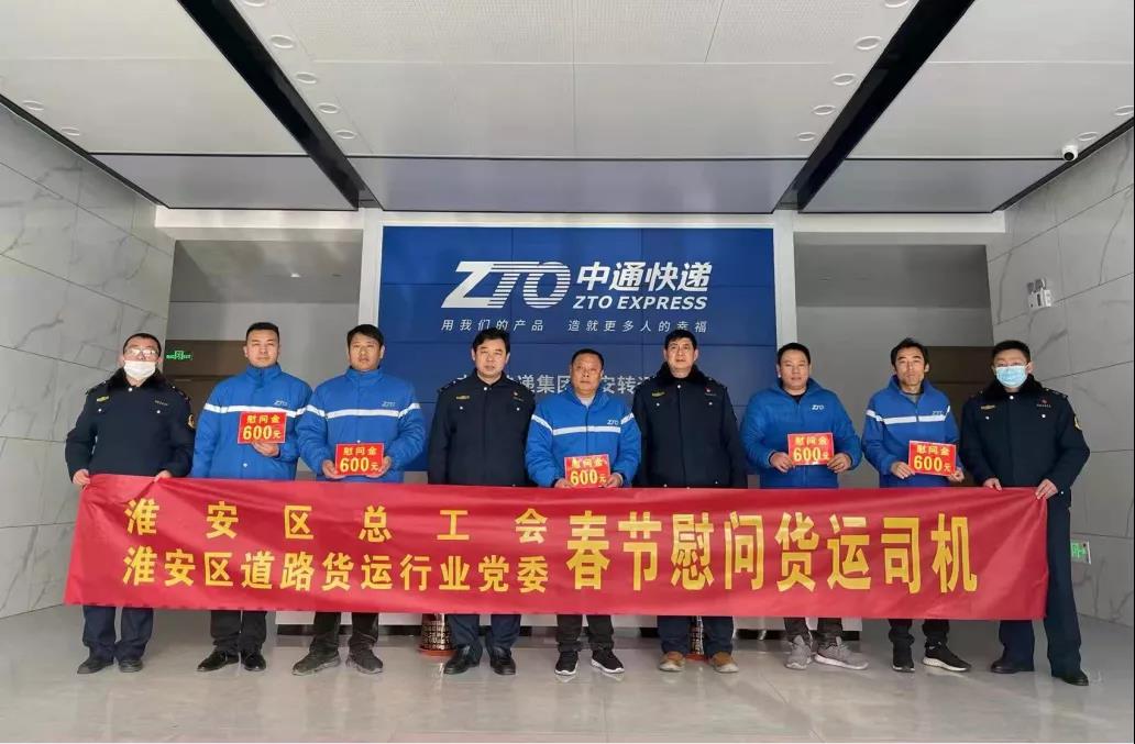淮安区交通运输综合行政执法大队赴淮安市中通物流有限公司,代表淮安区道路货运行业党委,慰问党员货车司机,让企业和驾驶员在春节来临之际,感受到党和政府关心关怀。