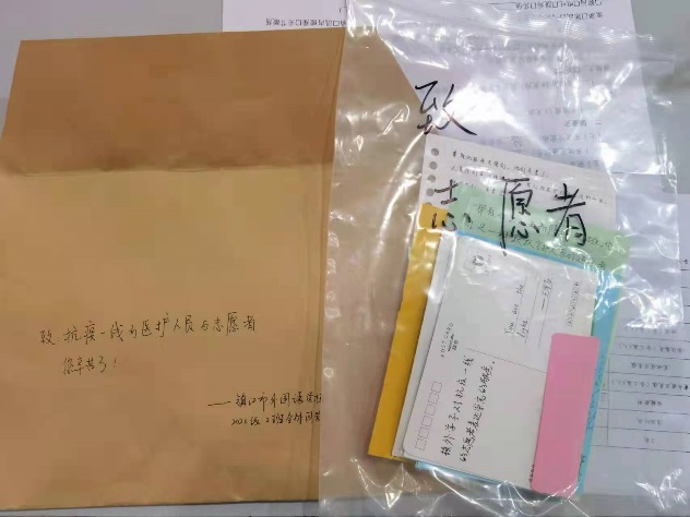“谁说站在光里的才算英雄,谁说对抗平凡的不算英雄,谢谢你们”,一段热情洋溢的视频背后,是镇江市外国语八年级二班同学们真挚的心声。3月26日下午,几名学生代表将全班同学精心制作的祝福卡片带到了火车站北广场的交通查验点上,担心影响防疫工作,无法到场的同学提前把想说的话录成了视频。自制的视频和手写的卡片记录下对交通执法队员的敬意和支持。此外,同学们还用班费采购了面包、牛奶、饮料等防疫物资送到现场。“很感动,这些心意太珍贵了,我们一定坚守到底”,忙着查验和登记,没有太多时间交流,交通执法队员徐喆只能用敬礼的方式向同学们表示感谢。