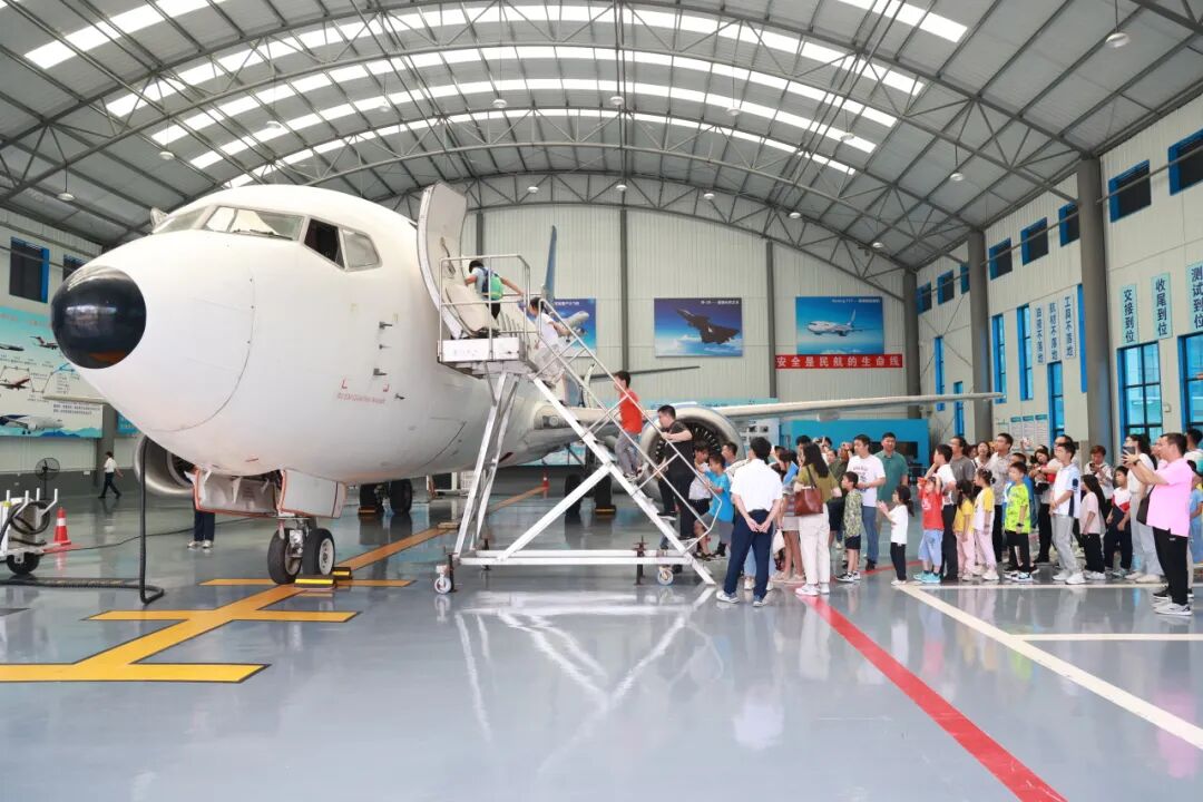 交通职工亲子在广西交通技师学院参观民航培训基地。