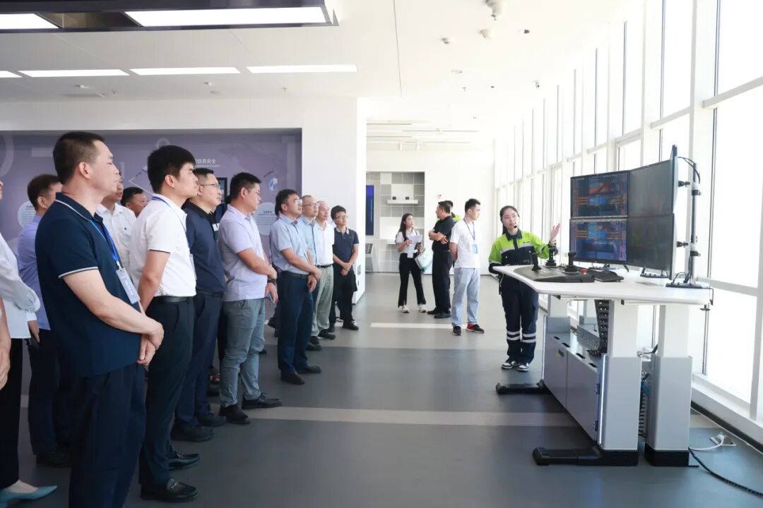 在北部湾港智慧运营中心展厅,与会人员详细了解新型智能码头操作系统、岸边装卸系统与堆场装卸系统等智慧港口情况,参观北部湾港钦州自动化集装箱码头智慧港口作业区实景;