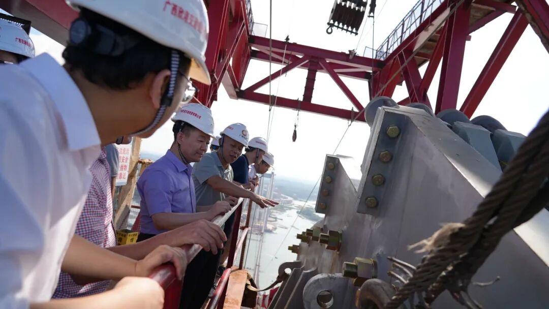 与会人员参观龙门大桥主塔施工情况。( 广西交通投资集团 供图)