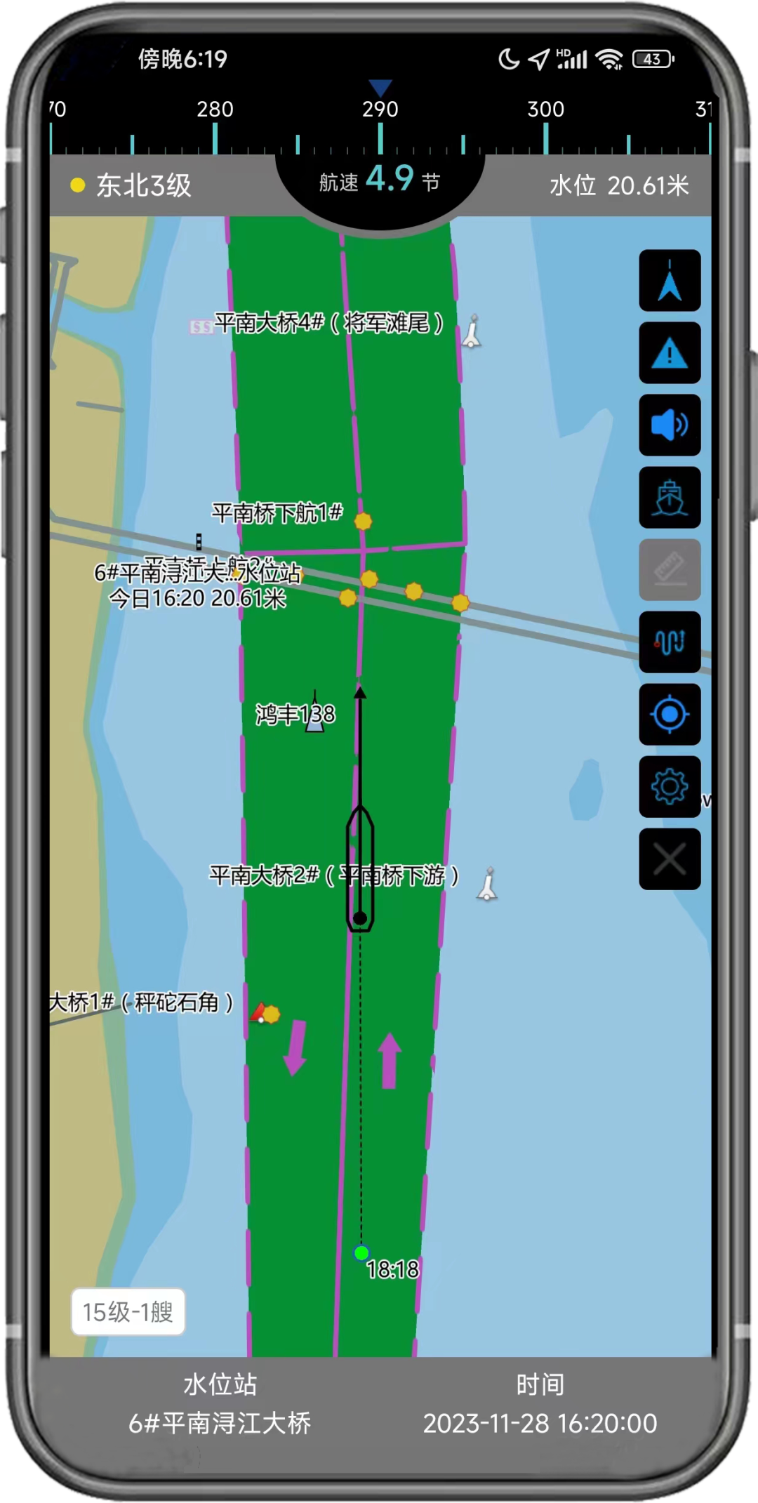 “桂船通APP”面向船员和船东提供一站式服务,包括船舶智能助航、船员管理、安全培训、岗前培训、登轮培训、燃油监控、能耗数据统计等功能,以及提供海事检查、港航检查、船检检查等船舶检查共性数据,进一步提升船员的安全意识和技能,筑牢水上安全防线。