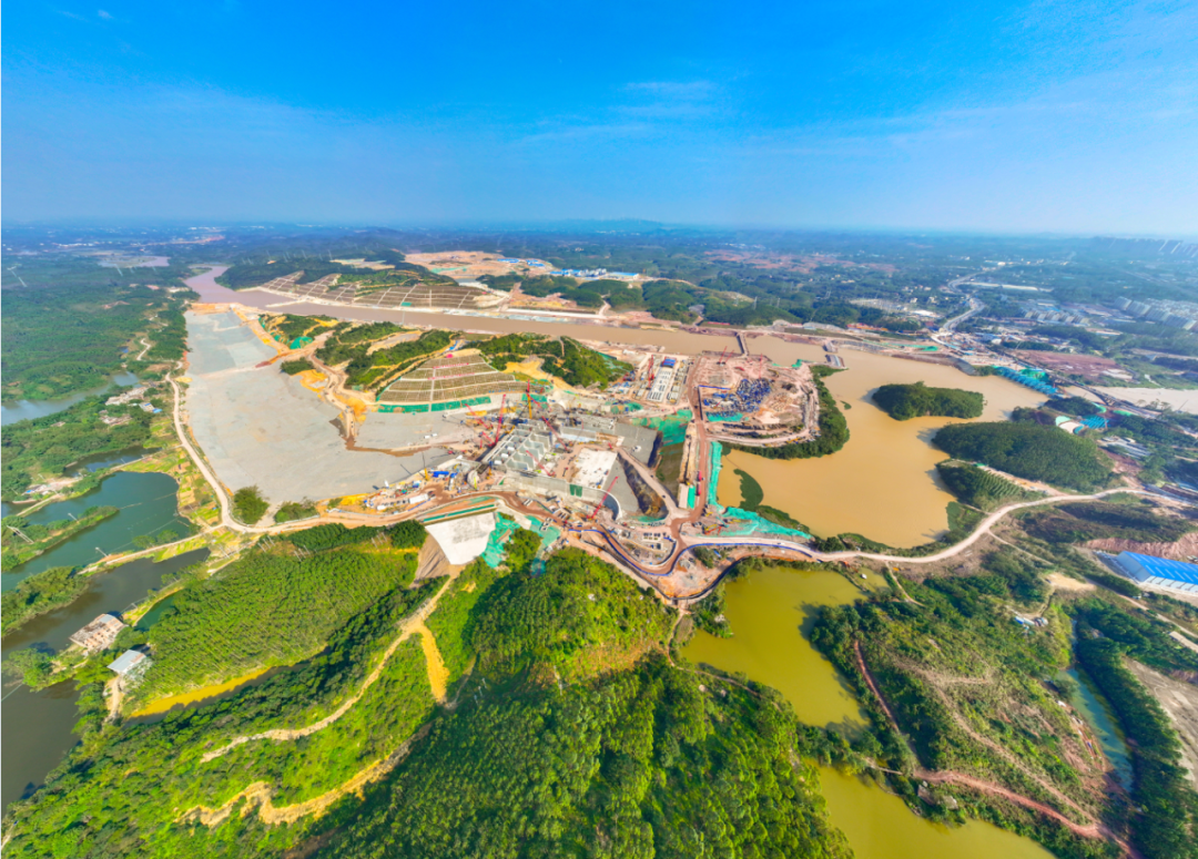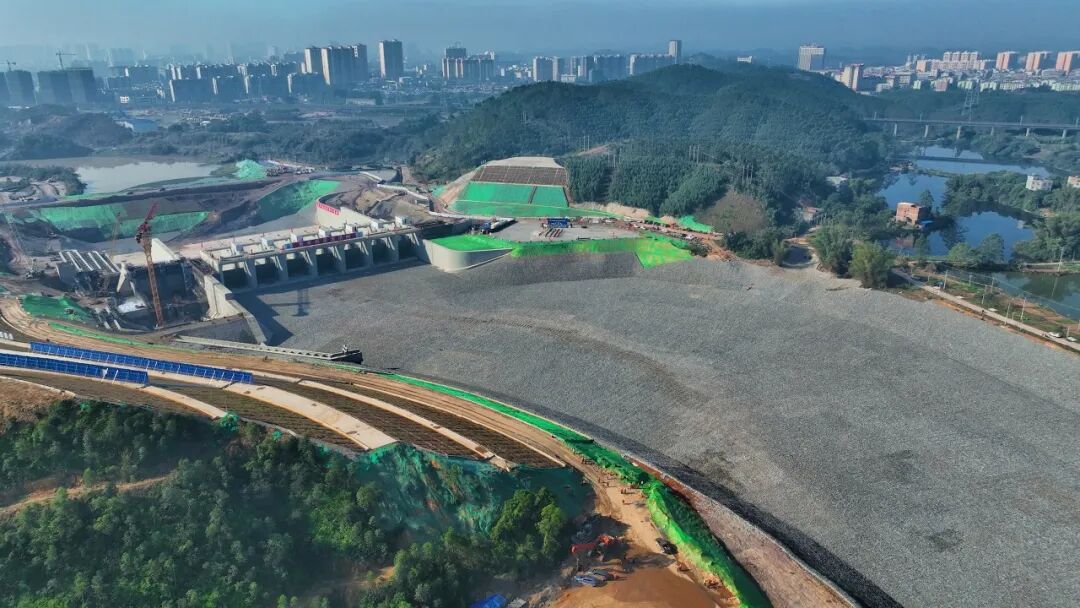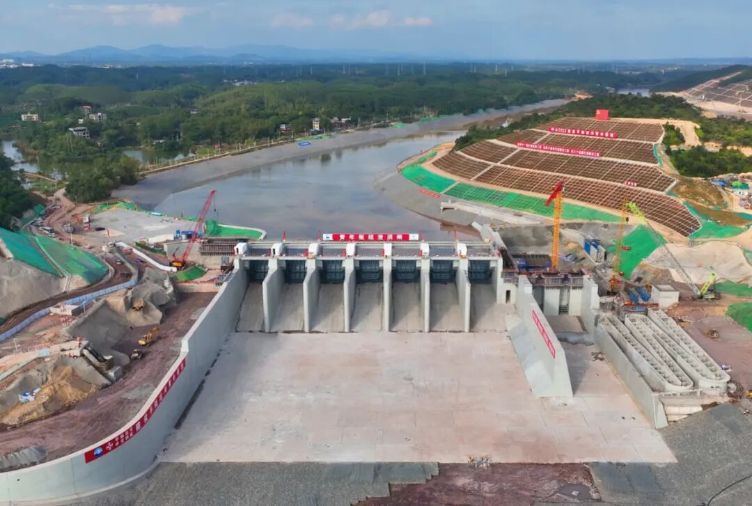 青年枢纽泄洪闸主要建筑物由7孔泄洪闸、放水建筑物、电站、鱼道及两岸连接坝段组成。目前,泄洪闸主体结构累计完成混凝土浇筑15万立方米。
