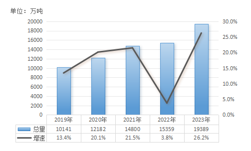 防城港2019-2023年港口货物吞吐量及增速。(张玲 供图)