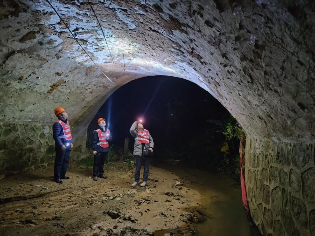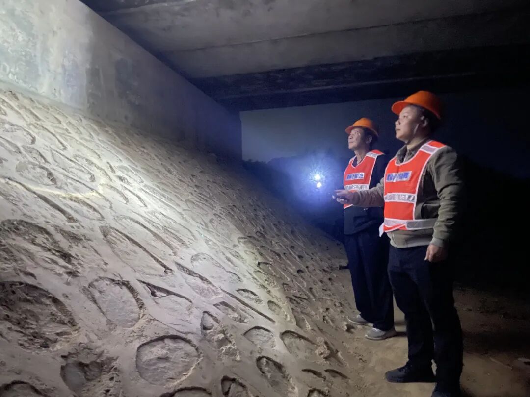 浦北公路养护中心工作人员检查国道359线涵洞。(黄森 摄)