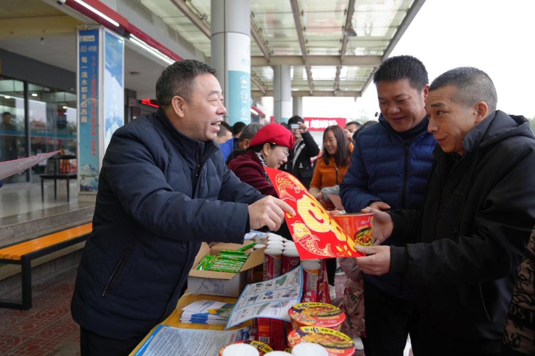 1月26日,贺州市交通运输局等部门联合辖区商会和爱心企业在广贺高速白马服务区开展“文明暖心·情满旅途”学雷锋志愿服务活动,为过往司乘提供引导咨询、知识宣传等志愿服务,免费发放饮用水和食物等物资,并赠送新春礼品。