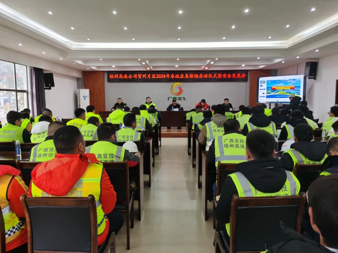 梧州高速公司贺州片区2024年春运安全应急保畅启动仪式暨安全交底会现场。