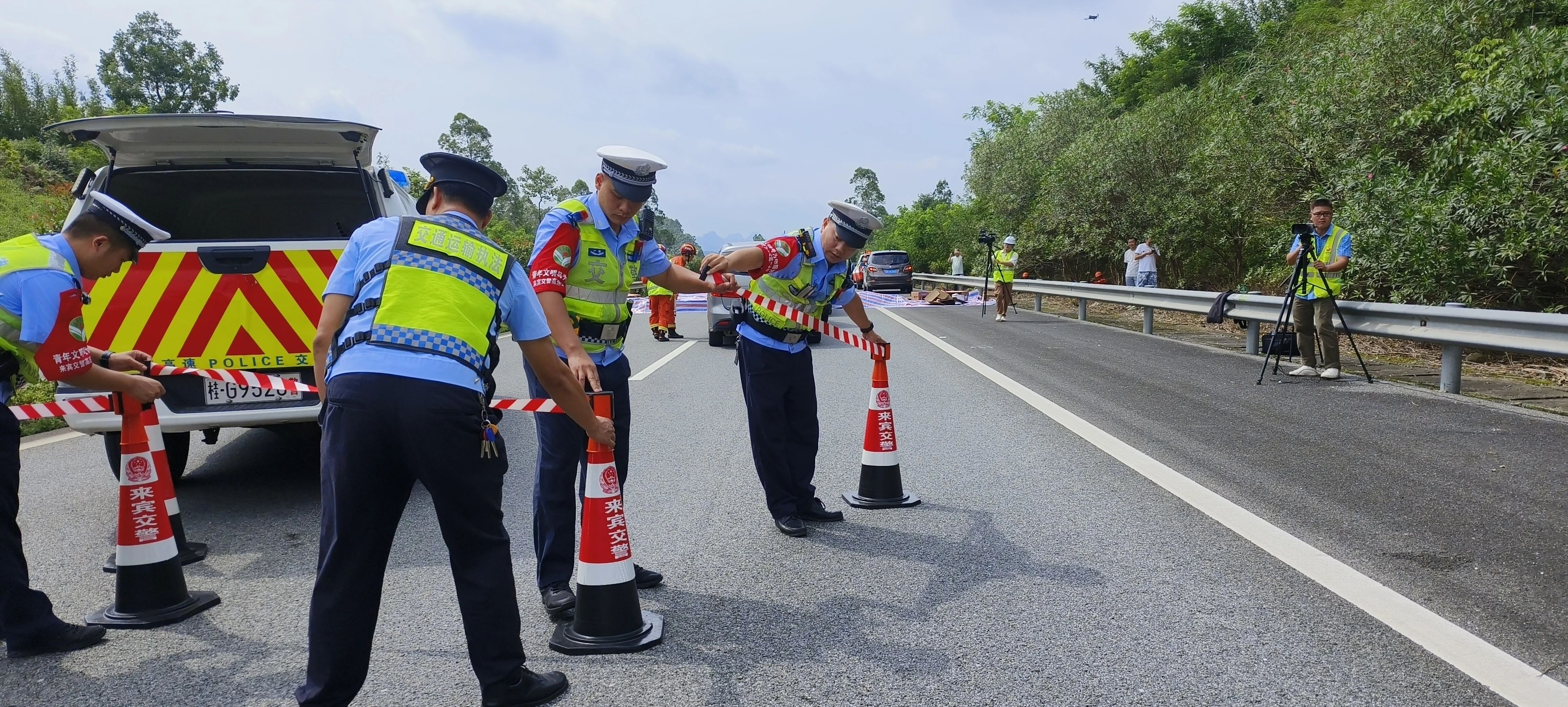 接到报告后,相关高速公路运营公司迅速启动Ⅲ级应急响应,并联合交警、交通运输综合行政执法等部门赶赴现场进行紧急处置。同时上报来宾市应急管理局应急指挥中心,通知相关部门前往现场参与救援。