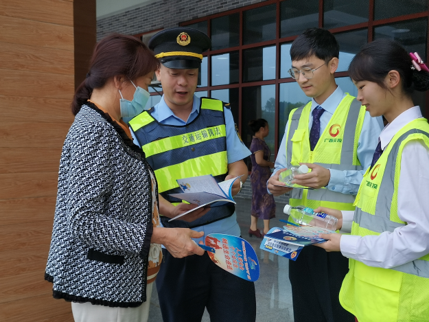 荔浦讯(通讯员 黎杨阳 唐国强 摄影报道)为切实提高群众安全生产意识和自我防护能力,近日,自治区交通运输综合行政执法局第四支队第六大队联合荔浦市公安局交通管理大队高速中队、广西交通投资集团桂林高速公路运营有限公司荔浦分公司等单位在荔浦服务区开展了以“人人讲安全、个个会应急——畅通生命通道”为主题的“安全生产月”宣传活动。
