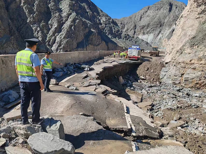托克逊执法大队:洪水肆虐冲断路 联合抢修保畅通