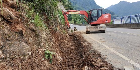 在县域国道沿线,养护人员有的清扫路面,有的清理边沟,有的清砍边坡杂草,有的修补路面坑氹,有的清砍遮挡警示标志的藤蔓树枝,有的做好标志标牌标线、波形护栏等损坏修复工作,有的在修补路面病害。目前,已清砍杂草7条426公里,清理塌方86处8600立方,清理水沟123公里,清理路面落石5处35立方米,路面清灌缝15000米,挖补路面650平方米。