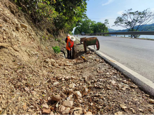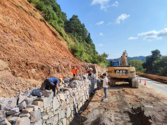 7月15日,该中心克服时间紧、任务重、高温等困难,组织队伍对G209线等沿线边坡、路基损毁路段进行修复,通过修建挡土墙、清理塌方、清扫路面冲砂、淤泥、垃圾等方式,消除公路安全隐患,保障群众生命财产安全。同时对不能及时修复和消除安全隐患的路段做好安全防护措施,及时设置规范醒目的安全警示标牌,安排工作人员持续观测,以便及时掌握安全隐患的动态变化,为后续的修复重建工作提供有力的支持。