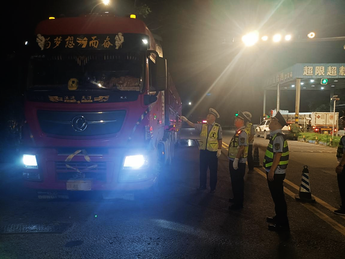 为持续保障道路运输安全,有效防范和坚决遏制重特大事故发生,连日来,眉山市交通运输综合行政执法支队联合眉山市公安局交通警察支队,针对个别货车司机打“时间差”,逃避超限检测站检测、超限超载运输等违法行为,开展了夜间联合执法突击行动,严厉打击违法运输行为。
