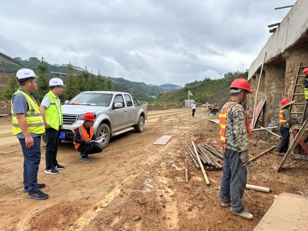 西林公路养护中心工作人员排查辖区工地安全隐患。