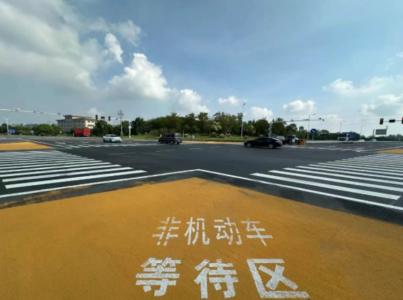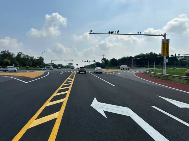 本次提升工程对全线交叉口人行横道标志实施新规范荧光改造,在353省道与125省道、与439省道交叉口新增彩色非机动车等待区,强化通行引导与安全防护;优化353省道与201县道、与201县道等多处交叉口渠化方案,增设中分带护栏及新式防撞柱,保障行车安全;完善全线标志标牌、更新升级路侧护栏,清理道口视距范围绿化,全面提升道路安全保障能力。