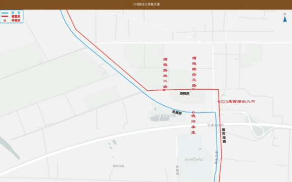 5、103路由瘦西湖路公交首末站始发,按原线路行驶至瘦西湖路与扬菱路交叉口后,改道瘦西湖路、酒槐路、扬菱路通行,上下行线路走向一致。撤销槐泗李庄1站,增加酒槐路纬二路、酒槐路经三路、S28瘦西湖出入口3站。